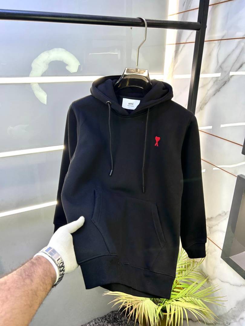 Ami Logo Imported Black Super Premium Hoodie F3282-BL