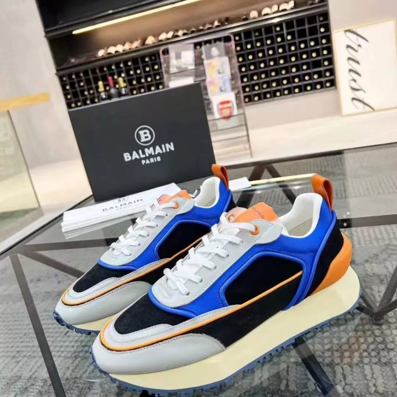 Balmain Multicolor Suede Panelled Racer Low Top Sneakers