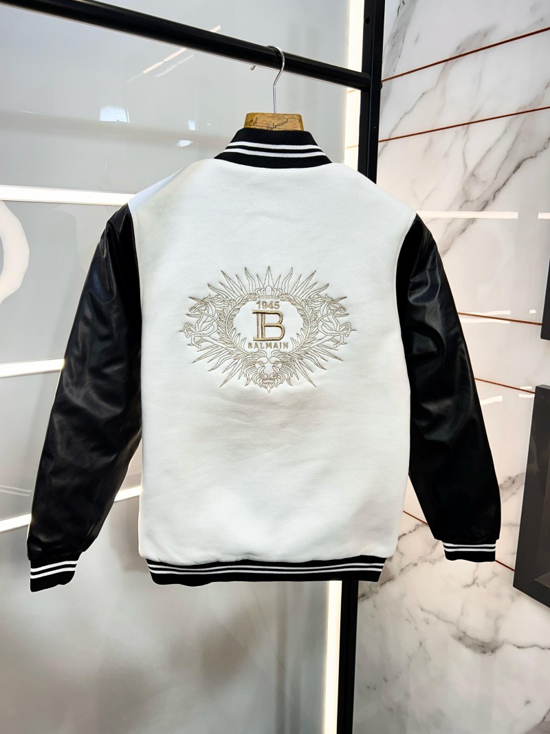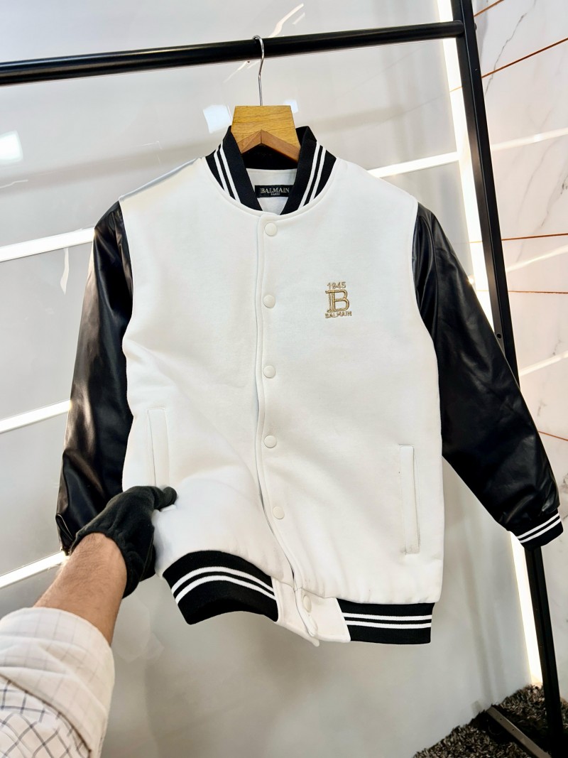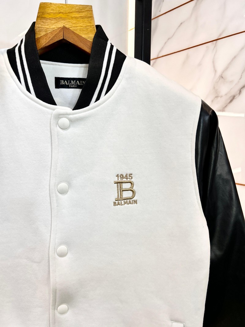 BALMAIN PARIS B LOGO IMPORTED BACK PRINTED SUPER PREMIUM WHITE VARSITY JACKETS 1162