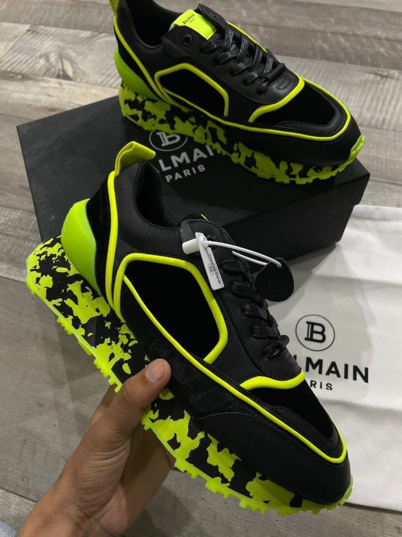 Balmain Velvet Nylon and Mesh Racer Low Top Sneakers