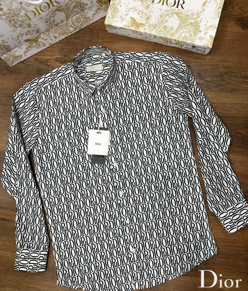 SALE CHRISTIAN DIO R MONOGRAM PRINT WHITE PREMIUM SHIRT WITH ORIGINAL BOX 564