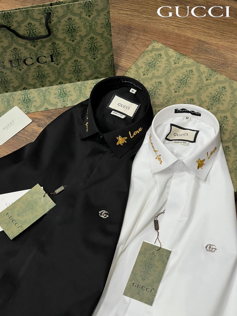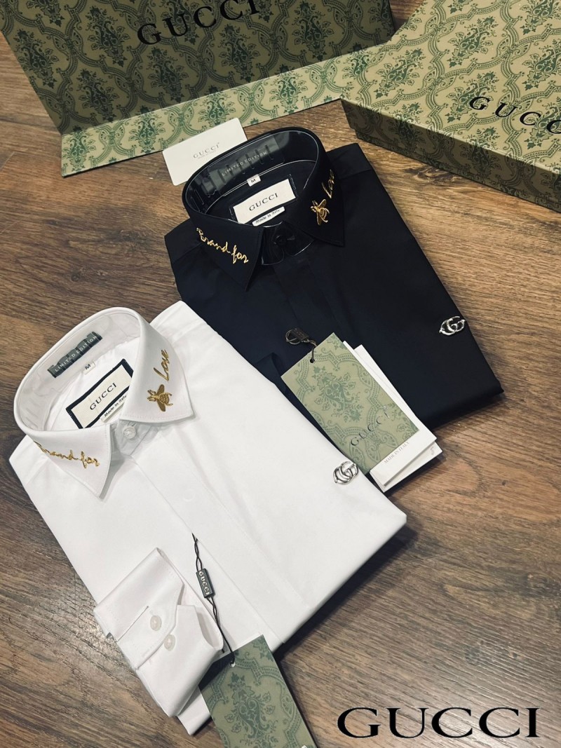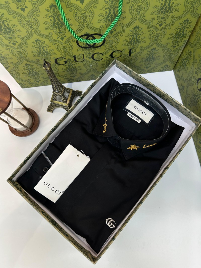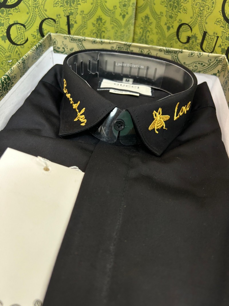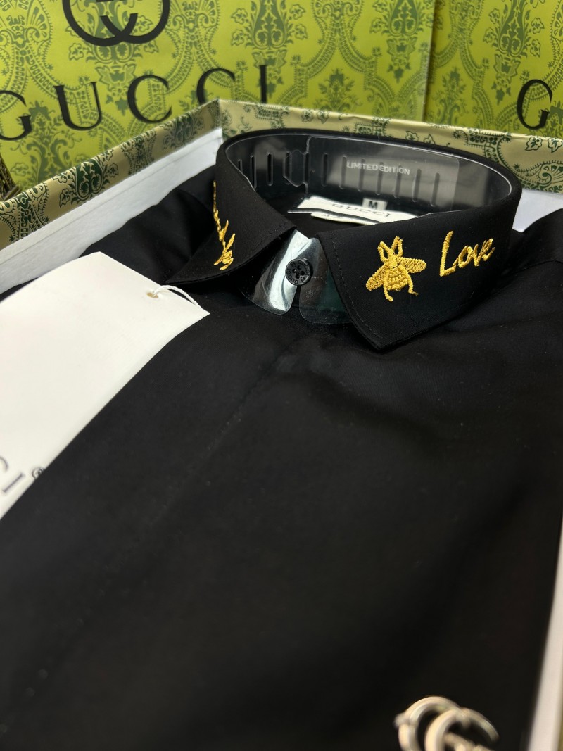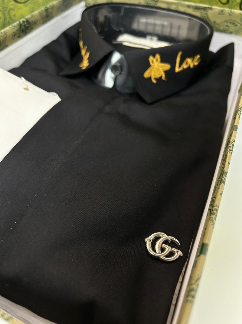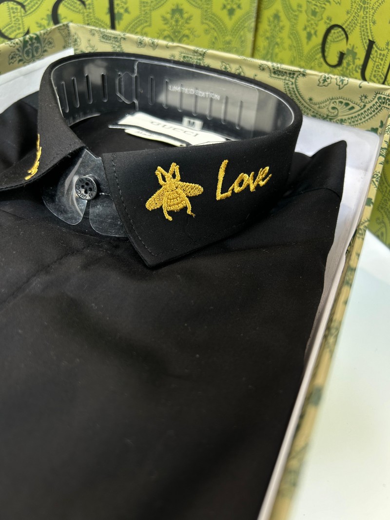 GUCC_I GG LOGO EMBROIDERY LOVE PRINT PREMIUM BLACK SHIRT WITH OG BOX AND CARRY BAG 1027