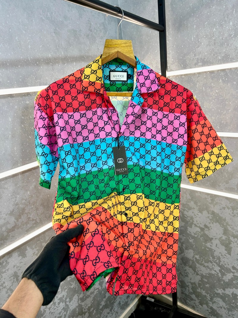 GUCC_I RANVEER SINGH RAINBOW EDITION MONOGRAM PRINT HALF SLEEVE PREMIUM SHIRT 1097