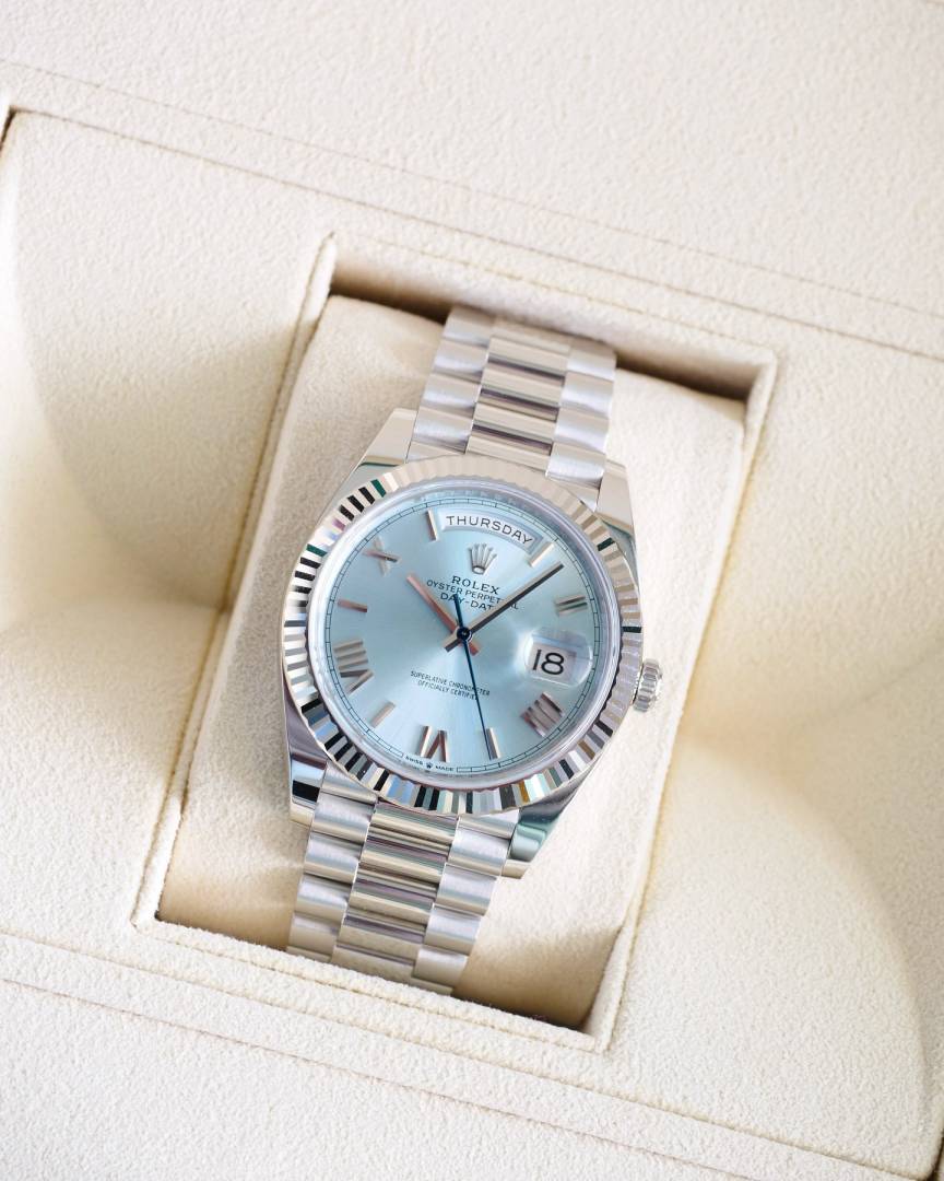 Role_x Oyster Perpetual Day Date Diamond Silver-Blue 40 Battery
