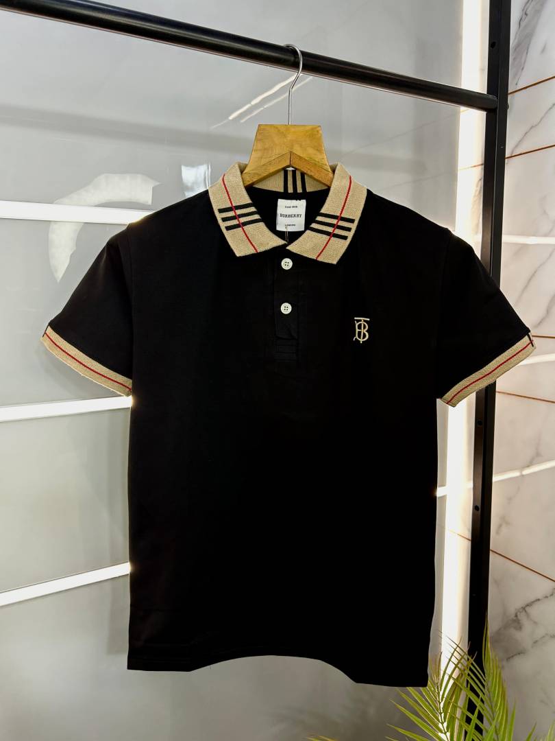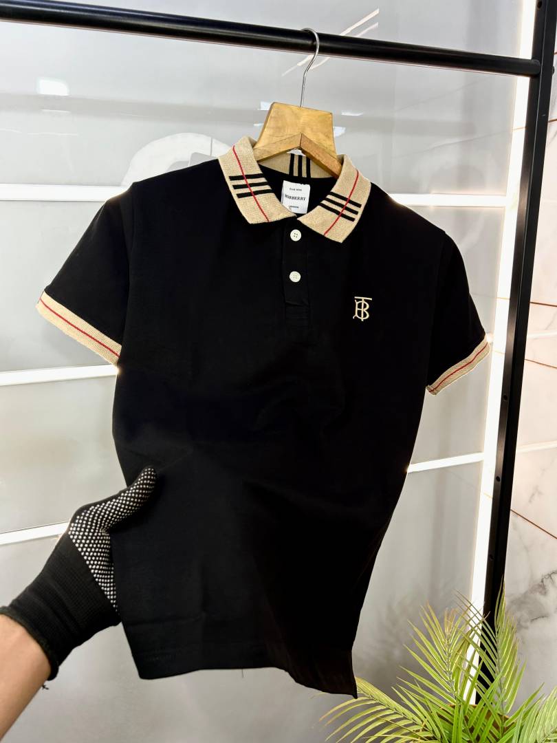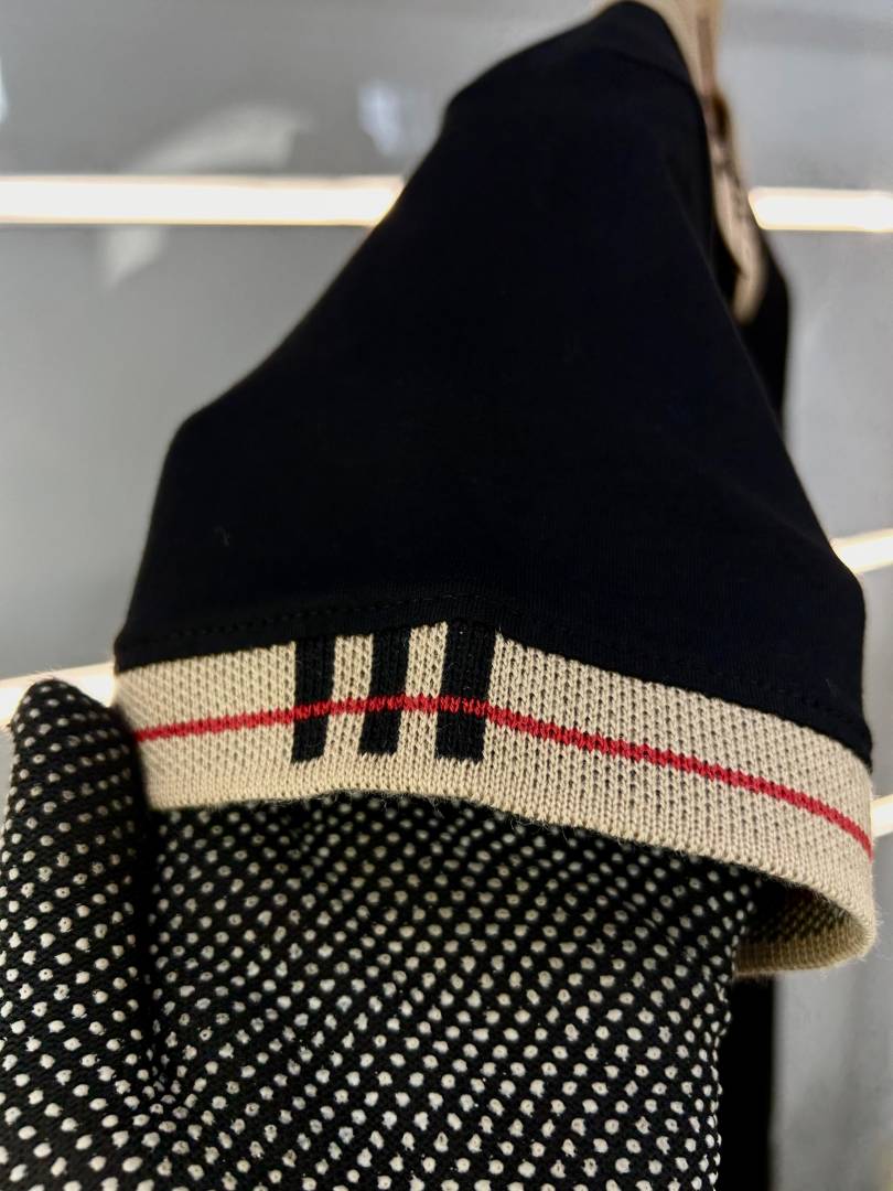 Sale Burberr y Black Polo Premium Collar Neck T-shirt F1563-BL