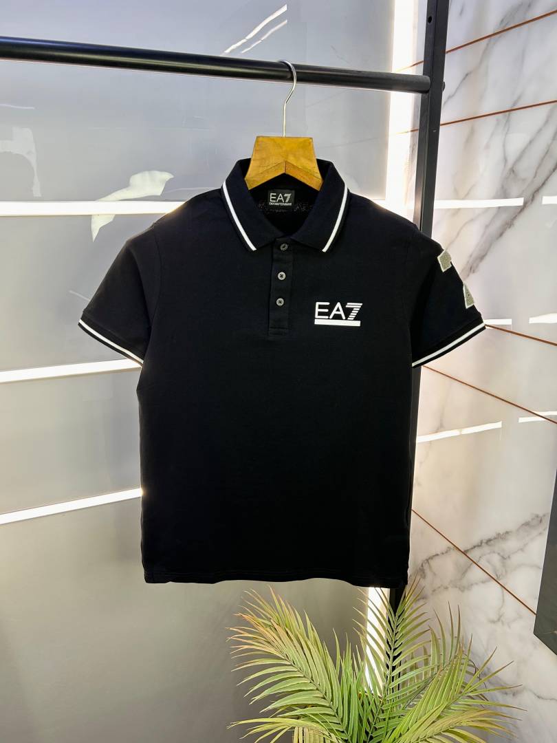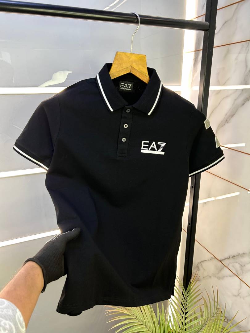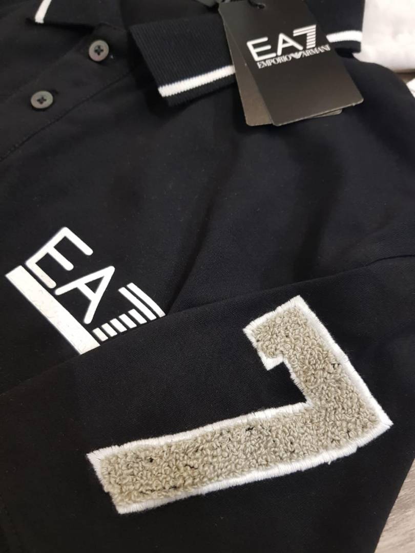 Sale Emporio Arman_i Black Premium Collar Neck Polo T-shirt F2383-B4