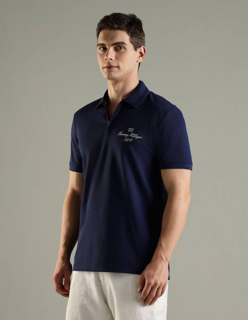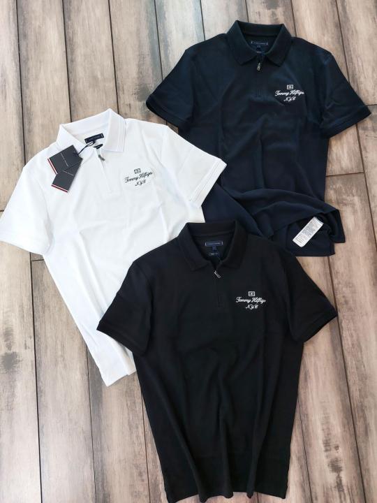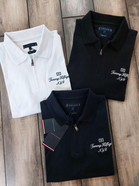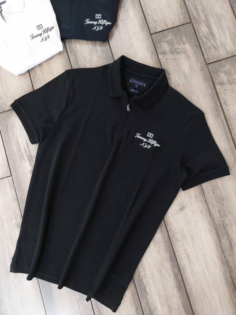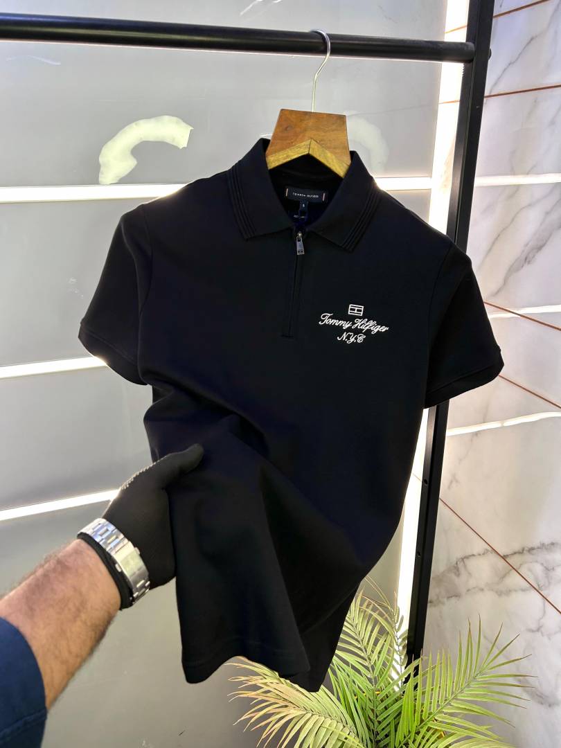 Sale Tommy_Hilfiger Black Polo Premium Collar Neck T-shirt F2927-BL